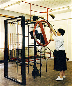 この作品は、中央のシートに腰かけ、ペダルを漕ぐと後ろのチャイムがオルゴールの仕組みでメロディーを奏でます。