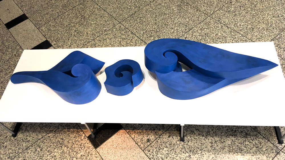 2000年頃からボール紙(白ボール)を主材とした立体作品を手掛けています。ボール紙を貼り合わせて形を作ります。一方向にしか曲げることが出来ない紙の性質により思わぬ美しい曲面や何だか滑稽な形が現れるところに面白味を感じています。