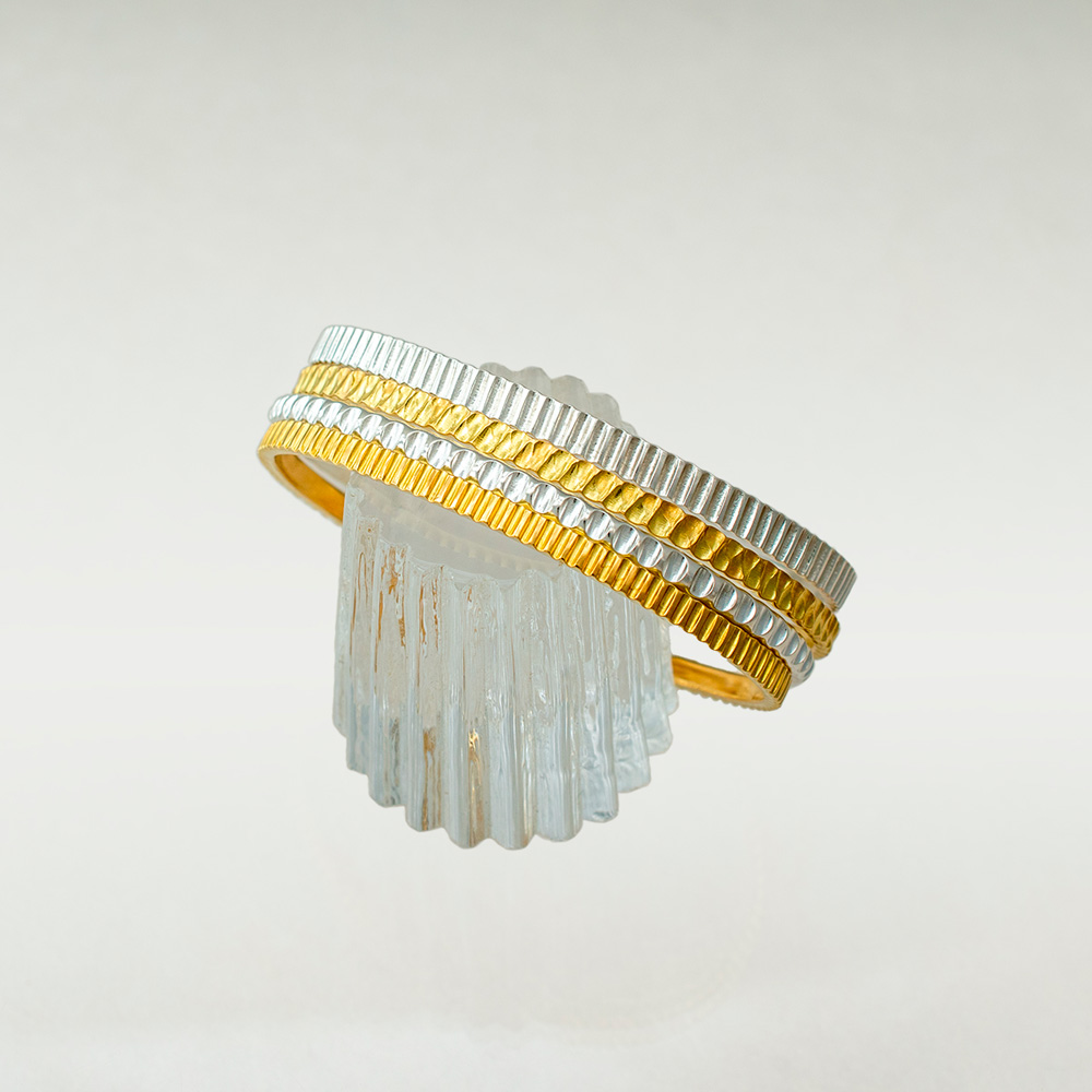 私は、自然の移ろいとその軌跡を金属に刻み、有機的な美と記憶の永続性を探求しています。 鎚跡に宿る律動は、すべての生命のつながりを紡ぎ、作品を手にする人の心に寄り添う新たな「軌跡」となることを願っています。 I engrave the passage of nature and its profound paths onto metal, exploring organic beauty and the permanence of memory. The rhythm of my hammer gives life to every connection, aspiring for each piece to be a new path that resonates with your heart.